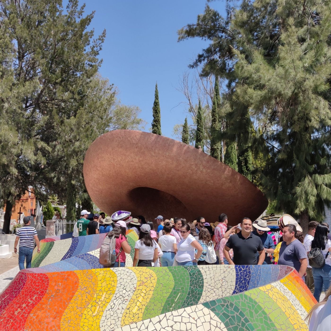 Este mausoleo tiene forma de un enorme sombrero acompañado de un zarape que recorre un largo camino por toda su tumba.