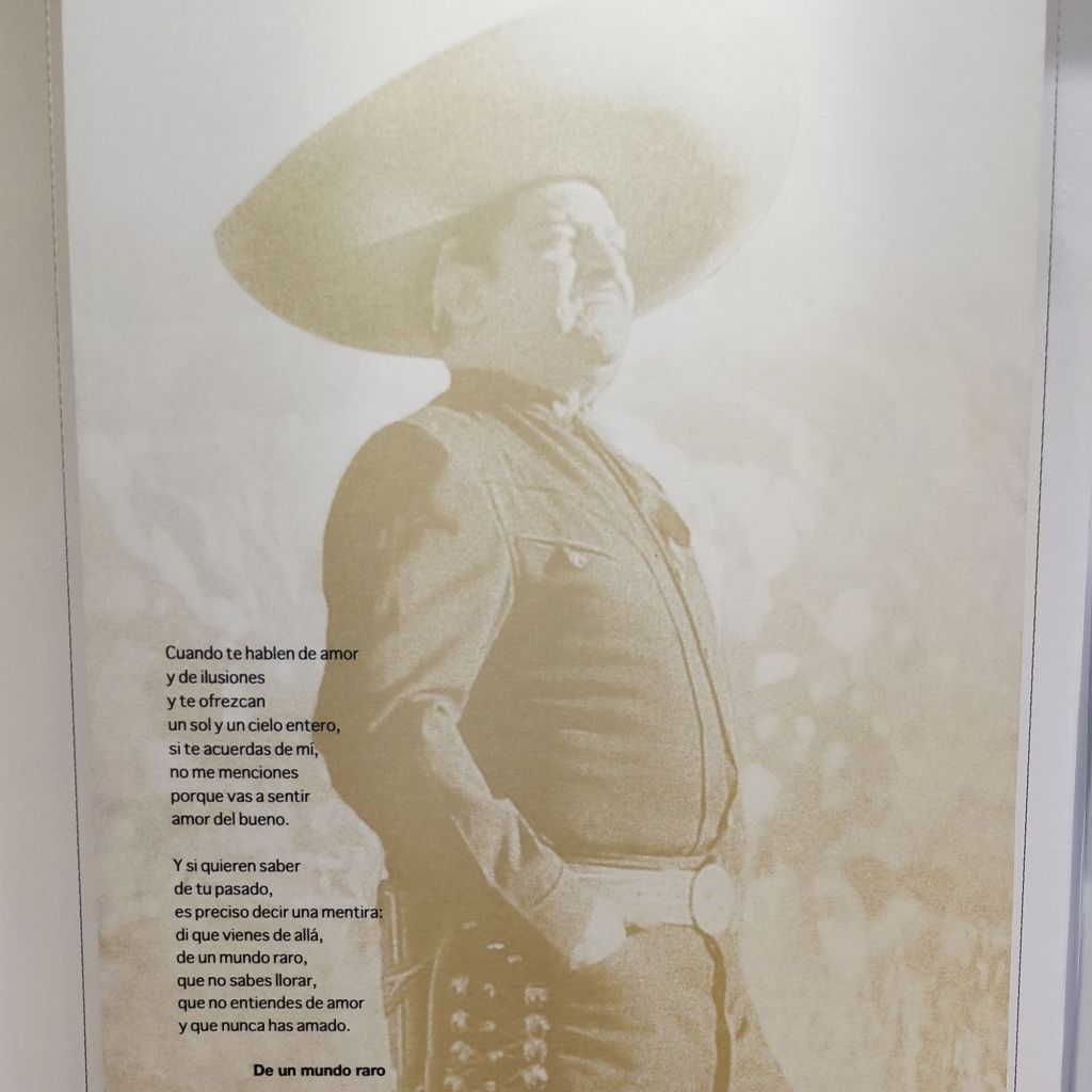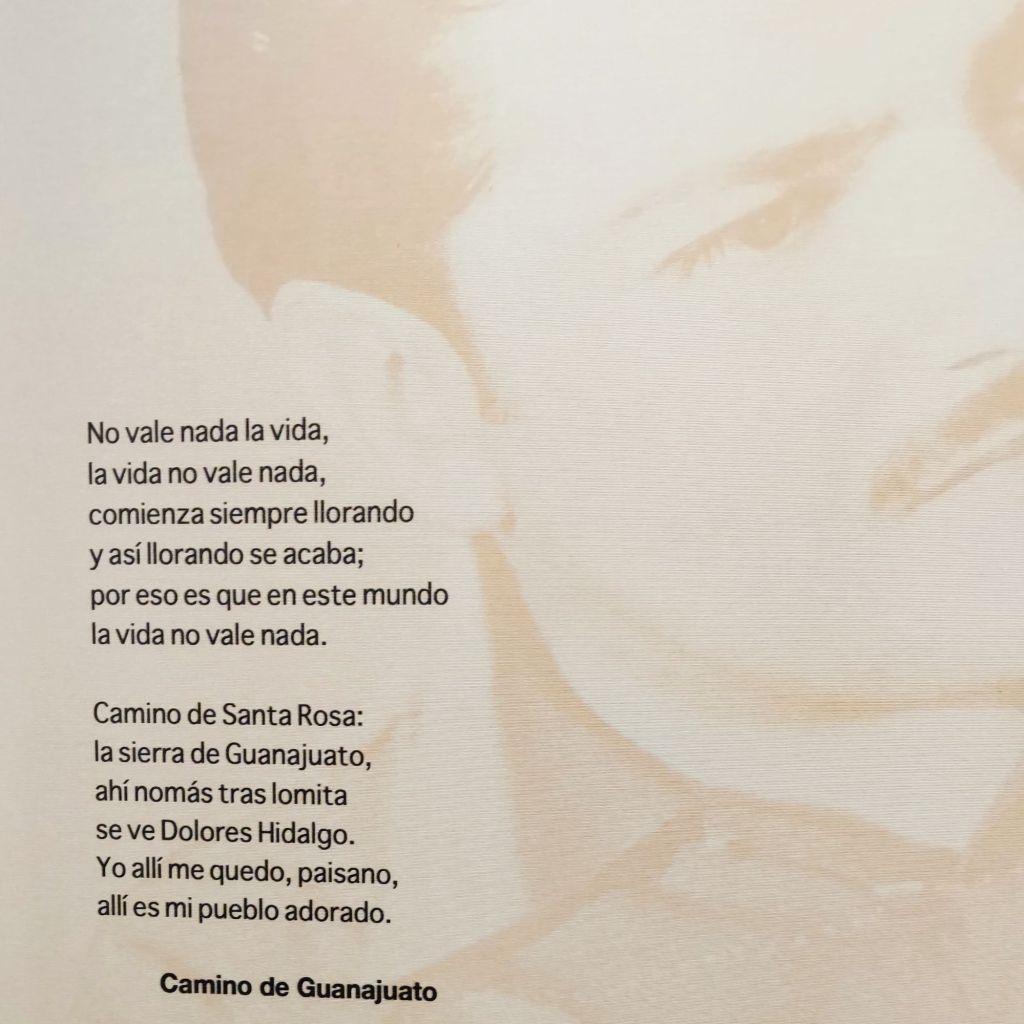 Ambas partes, tanto el sarape como el sombrero tienen inscripciones de sus obras. A lo largo del sarape se encuentran escritos los nombres de muchas de sus canciones y debajo del sombrero se encuentra, la mítica inscripción «La vida no vale nada«, parte de la letra de su canción Camino de Guanajuato y una de las frases más famosas de la música y folclor mexicano.