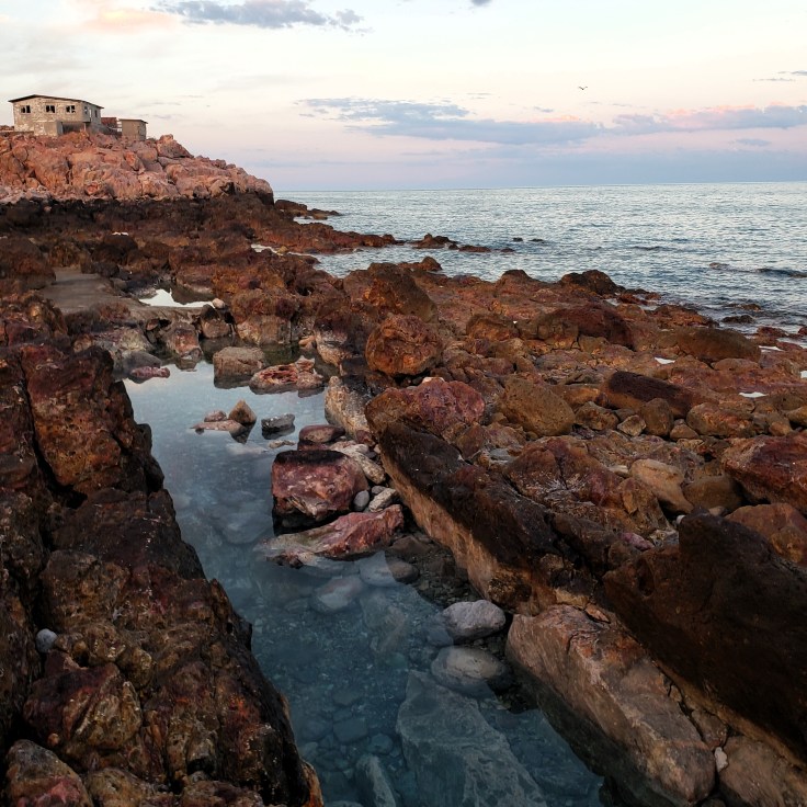Aquí se encuentra una especie de aguas termales, pues existen unas pequeñas albercas naturales formadas por rocas y agua sulfurosa, que llegan a alcanzar temperaturas de hasta 70 grados centígrados, por lo que aquí se recomienda no meterse cuando la marea está baja. Lo mejor es entrar a estas aguas termales cuando la marea esta alta pues en ese momento la temperatura disminuye debido al agua que entra desde el mar.