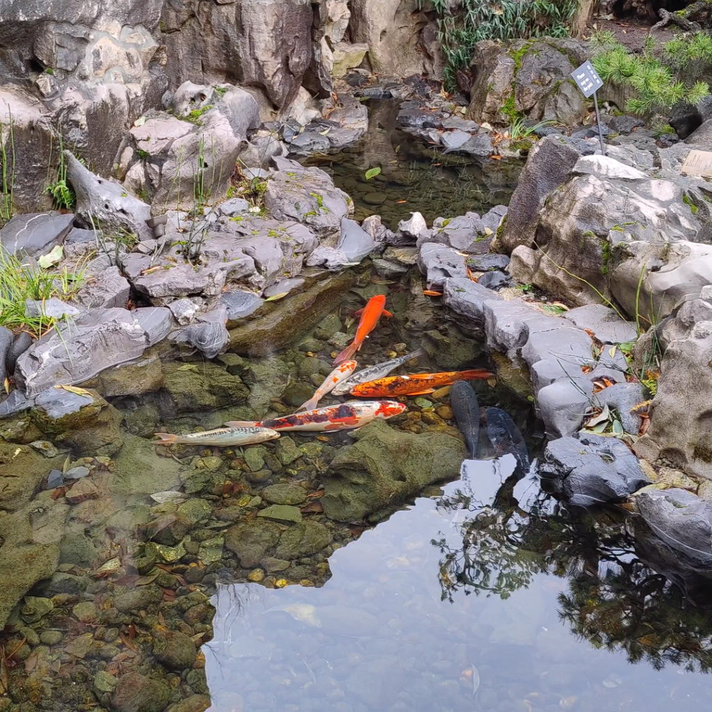 Justo en el centro de este jardín se encuentra un pequeño lago artificial en el que habitan las famosas carpas asiáticas conocidas como koi. Aunque dependiendo la temporada del año es posible que las veas moviéndose por el lago o completamente quietas para conservar energía pues en invierno, al disminuir la temperatura entran en un estado de hibernación y ralentizan su metabolismo. Durante mi visita, la temperatura estaba cerca de los 2 grados centígrados, por lo que las carpas no se movieron para nada, me hubiera gustado verlas moviéndose a lo largo del lago pero me servirá como pretexto para volver.