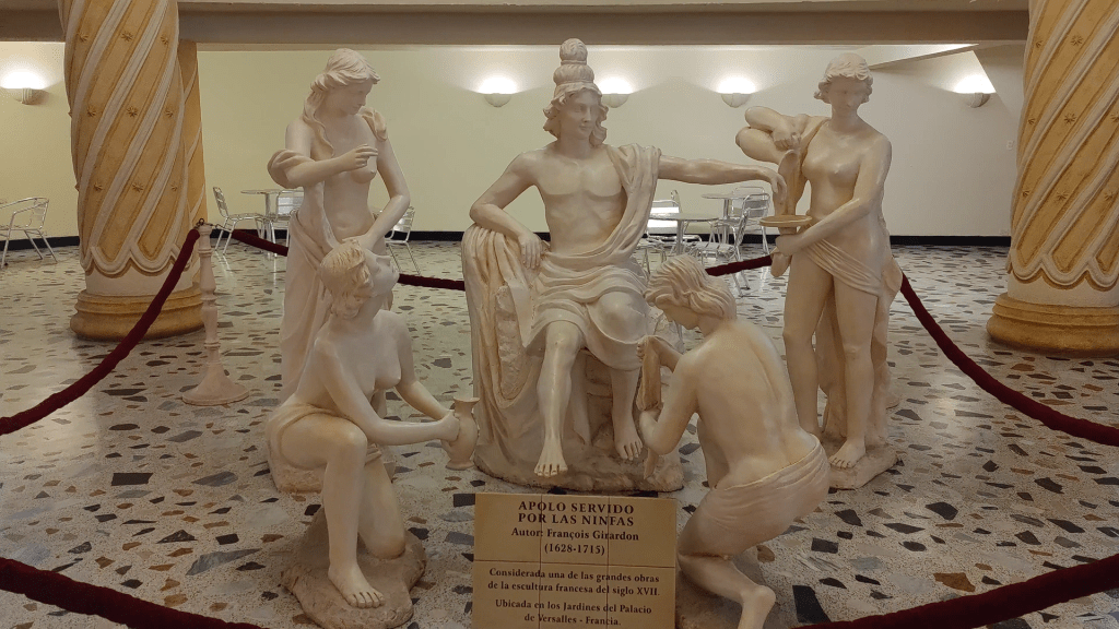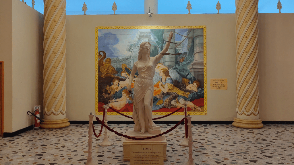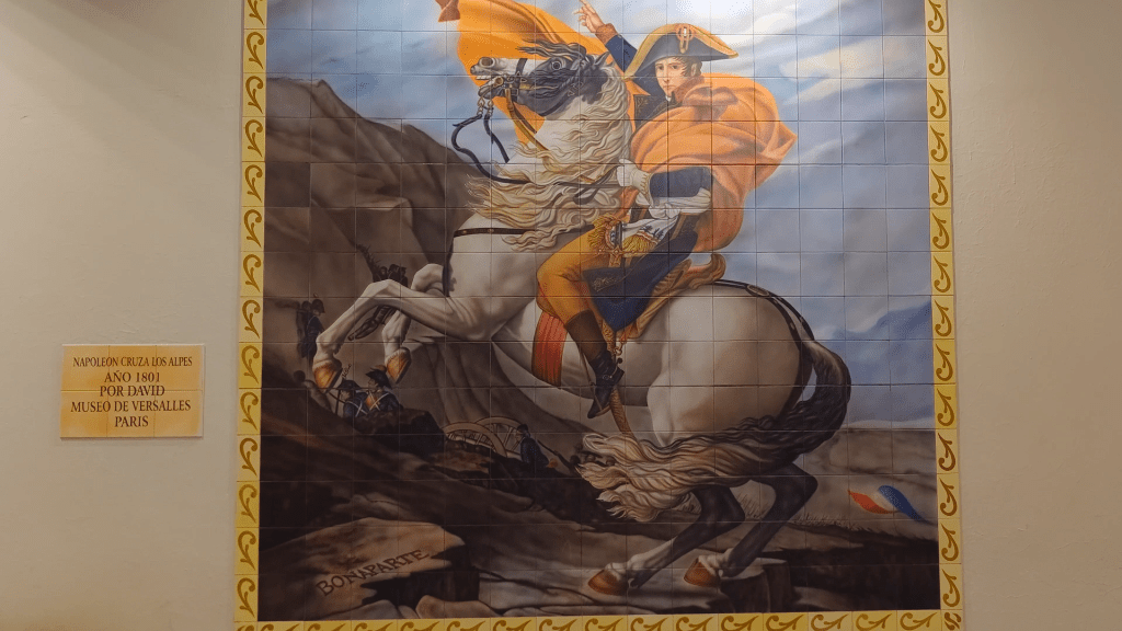 Una vez entrando, podemos encontrar reproducciones de algunas de las obras más importantes de la pintura y el arte universal, como la icónica pintura «Napoleón cruza los Alpes» o «El Rapto de Helena«, una escultura de Temis la diosa de la justicia y la equidad y un largo etc.