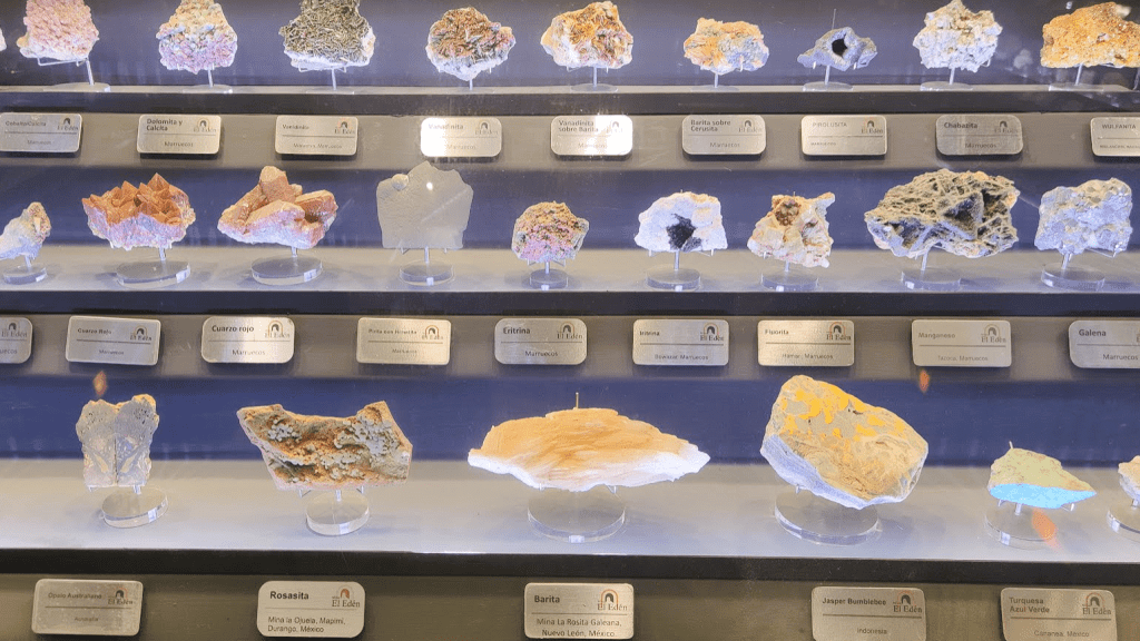 - Minerales y rocas: Una impresionante variedad de minerales y rocas extraídos de la Mina El Edén y de otras minas de Zacatecas. Podrás observar ejemplos de plata, oro, zinc, cuarzo, y más, algunos en su estado natural y otros ya procesados.